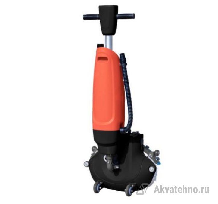 Модель оснащена двумя дисковыми щетками с общей рабочей шириной 520 мм. Давление прижима щетки составляет 8 кг, что позволяет качественно удалять загрязнения как с гладких, так и с шероховатых полов. Параболическая всасывающая балка эффективно собирает влагу с пола. Машина оборудована баками для моющего раствора и грязной воды объемом 3.5 и 4.5 литров соответственно.